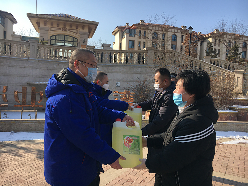 上午9:00來自營創(chuàng)三征、德瑞化工、營新科技、三征新化的62名青年志愿者全副武裝,化身病毒消殺戰(zhàn)士分別進入北辰家園小區(qū)、龍灣小區(qū)、五礦鉑海岸小區(qū),對11棟步梯樓、76棟電梯樓共計157個單元的樓宇門區(qū)域、樓道、樓梯、電梯及小區(qū)重點公共區(qū)域進行了全面無縫的病毒消殺,同時向小區(qū)物業(yè)共計贈送了100公斤84消毒液。